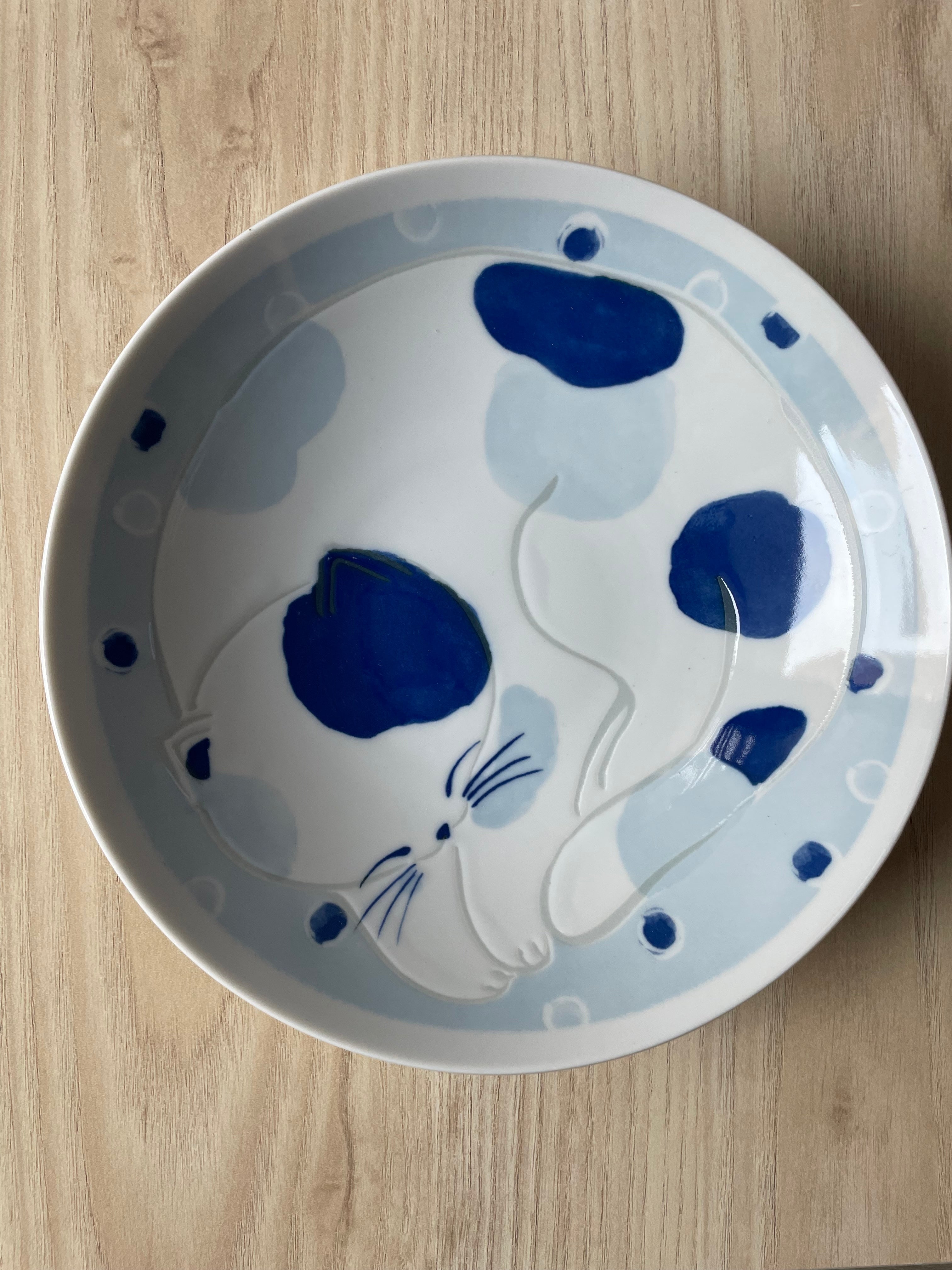 Cute cat is curling to sleep! Perfect size for curry or pasta dish. Great idea as gifting for cat lovers!